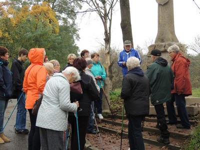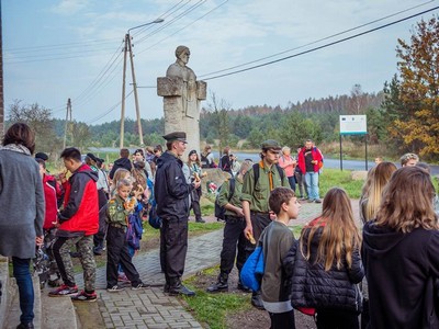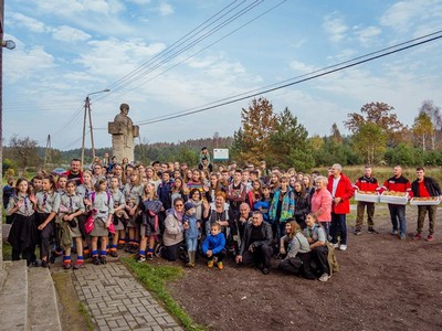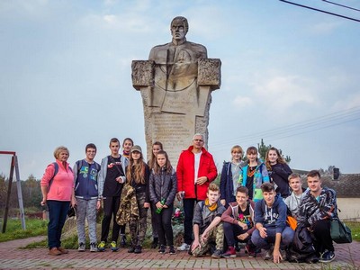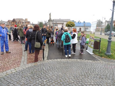 Uczestnicy rajdu odwiedzili Kolonię Inwalidzką, gdzie Pani Jadwiga Banasik przedstawiła, niezwykłą historię tej malowniczej miejscowości. Obok świetlicy znajduje się pomnik upamiętniający historię założenia miejscowości w latach 20- tych przez inwalidów wojennych, uczestników walk o niepodległość w 1920 roku, którzy jako rekompensatę za utracone zdrowie otrzymali po 9ha ziemi. Wszyscy też uczestniczyli w podniosłym wydarzeniu, poświęceniu tablicy pamiątkowej w miejscu gdzie 17 października 1943 roku dokonano egzekucji 19 letniego mieszkańca Kolonii Inwalidzkiej Władysława Skowrona za współpracę z partyzantami. Tablica została wykonana przez pana Jana Leszczyńskiego.